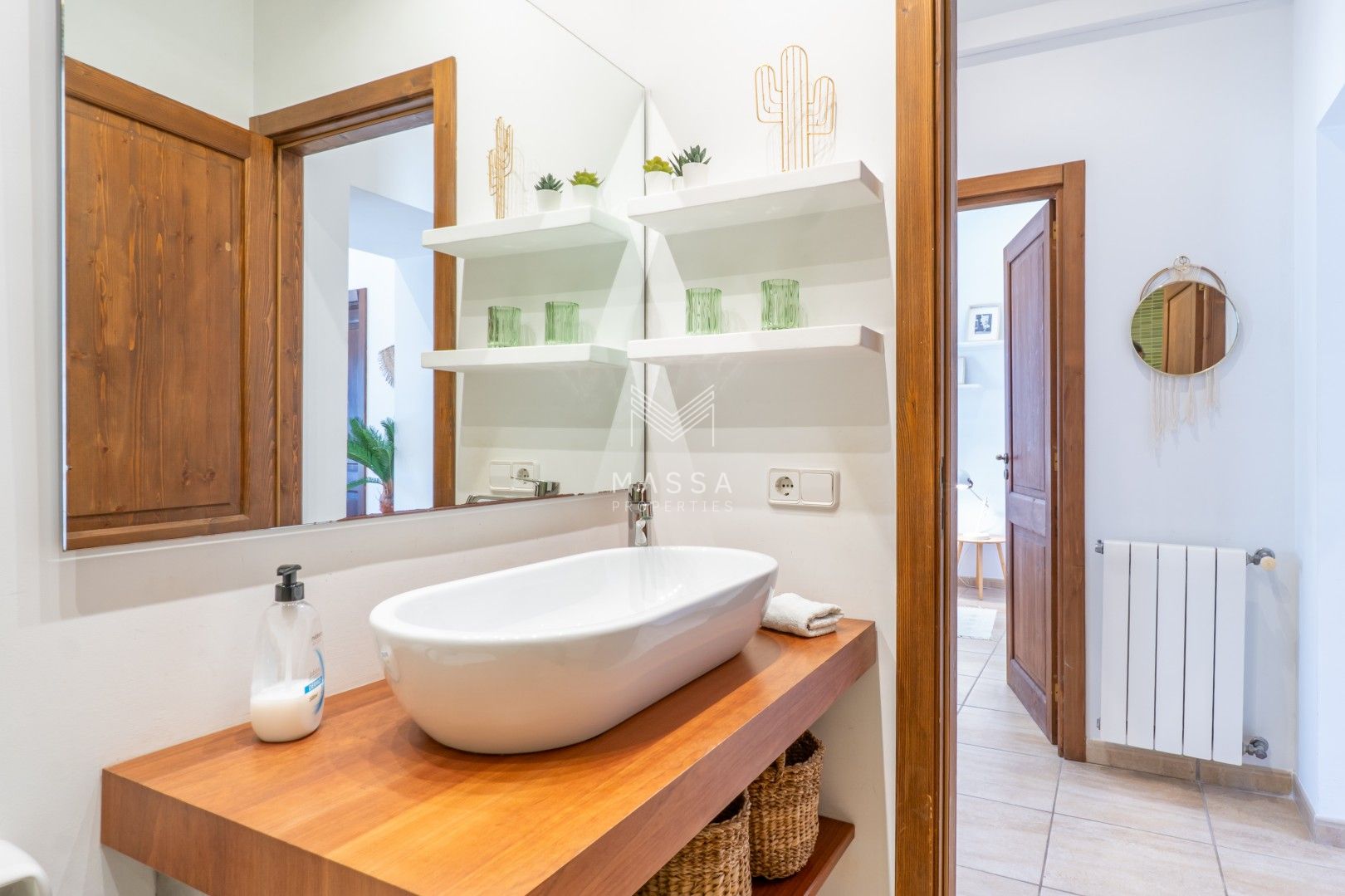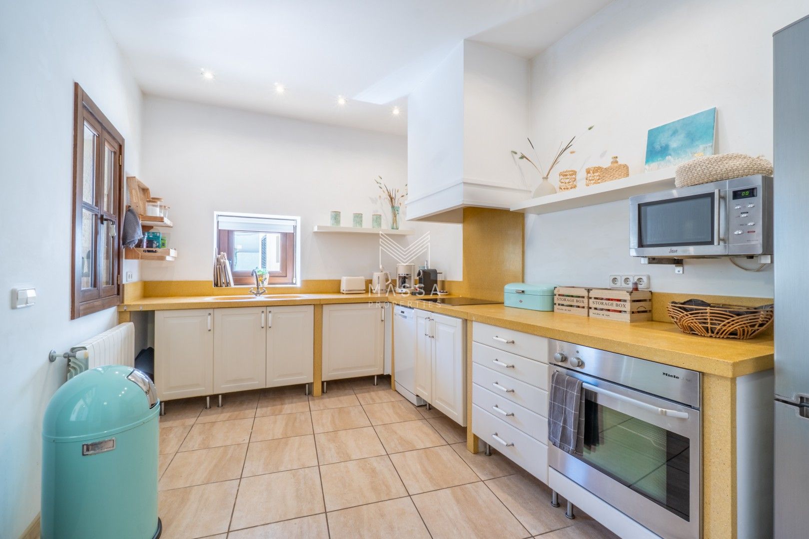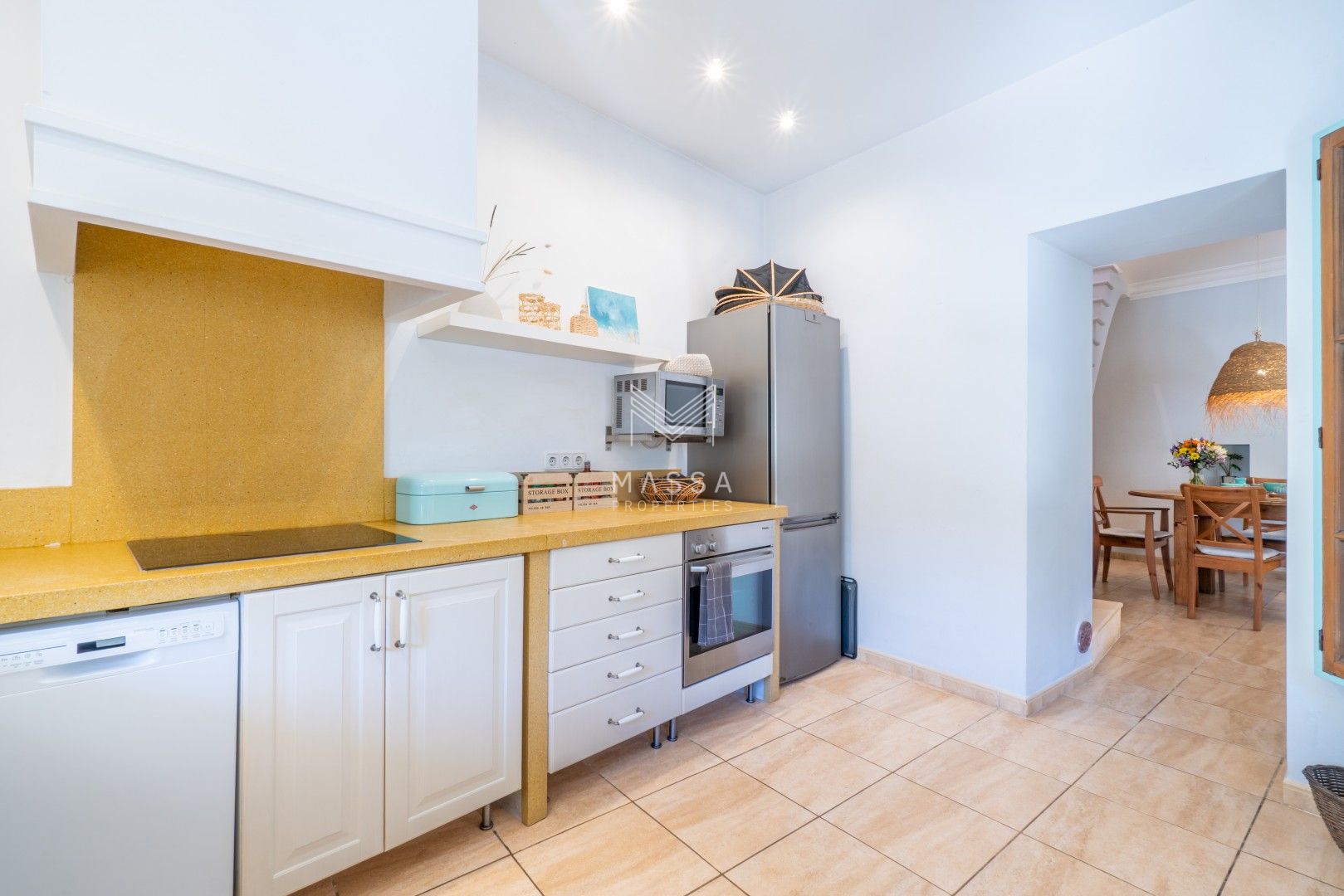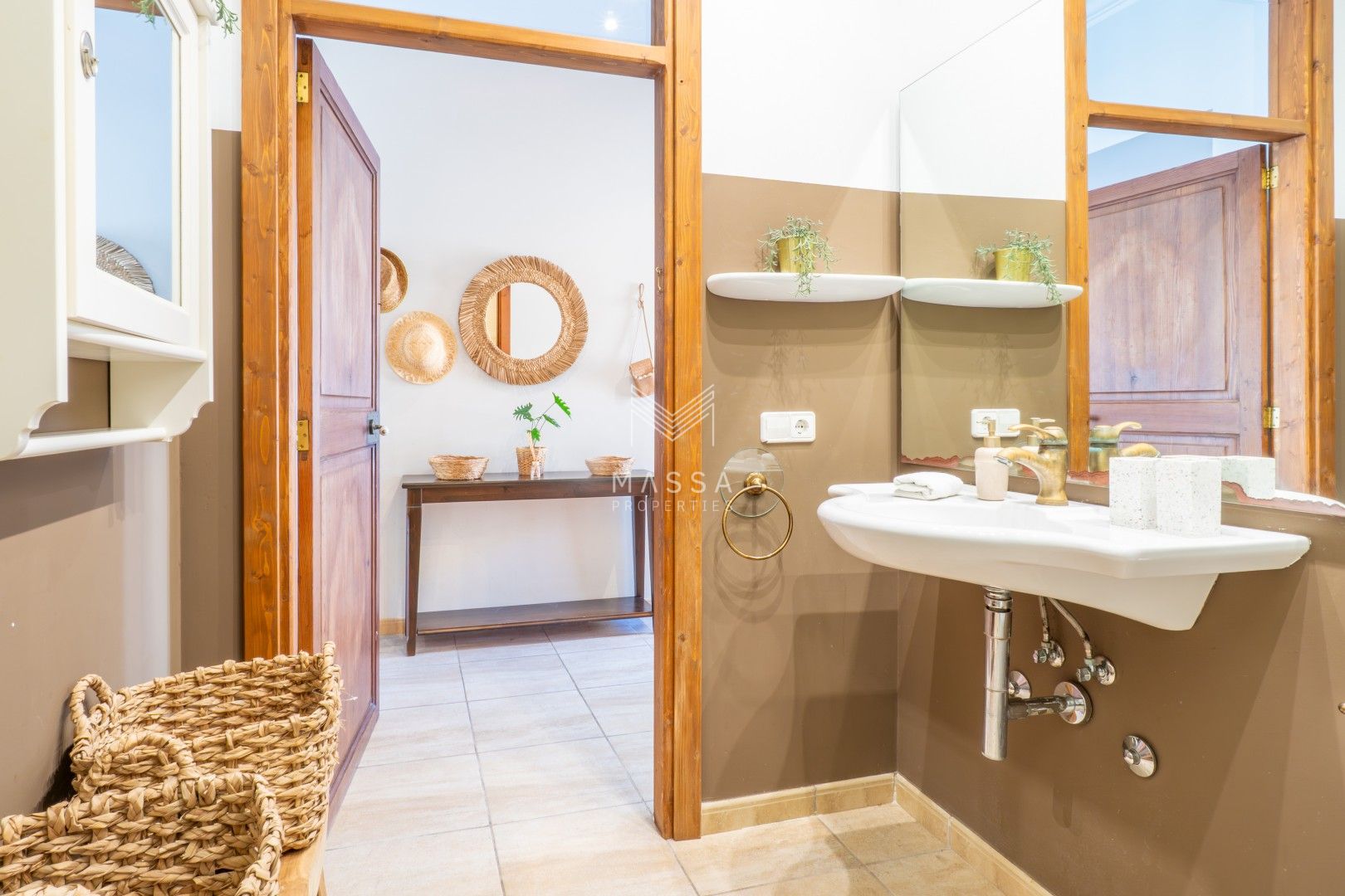 La decoración rinde homenaje al estilo tradicional mallorquín, con tonos claros, paredes de piedra arenisca y una armoniosa combinación de madera, mimbre y rafia, creando un ambiente cálido y relajado. La casa dispone de wifi y televisión de gran pantalla con todos los canales principales. La planta superior puede climatizarse bajo petición (con suplemento), y todas las estancias cuentan con ventiladores para garantizar el máximo confort durante su estancia.