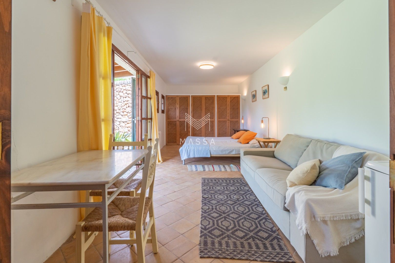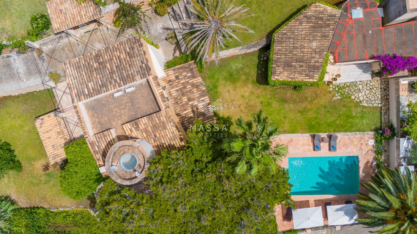 La vivienda se encuentra ubicada en un entorno caracterizado por su serenidad, rodeada de palmeras y vegetación propia del mediterráneo. La piscina iluminada constituye un entorno idóneo para el descanso y la relajación. Esta Finca dispone de varias tumbonas de teca de calidad, garantizando el confort de los huéspedes. La villa está equipada con una cocina provista de barbacoa, ideal para disfrutar de comidas al aire libre. Existen diversas terrazas, algunas de ellas cubiertas, que ofrecen espacios acogedores para el descanso y la relajación.